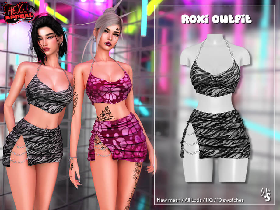 Hex Appeal – Roxi OutfitTurn heads with this daring two-piece set featuring a draped chain top and matching mini skirt. Sleek, sexy, and perfect for a night out look. available in 10 stunning colors